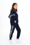Lacivert Yazı Şeritli Polarlı Kız Çocuk Kapşonlu Eşofman Takımı 16438
