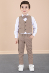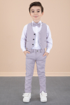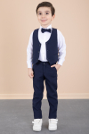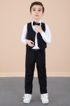 Düğme Kapamalı Yelek, Beyaz Gömlek, Papyon ve Pantolondan Oluşan Erkek Çocuk Takım Elbise Modeli