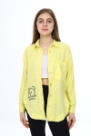 Lila Ayıcık Baskılı Yırtmaçlı Kız Çocuk Düğmeli Gömlek 18421