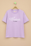 Lila West Side Kabartmalı Yazılı Kız Çocuk Bisiklet Yaka Tişört