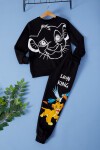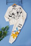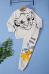 Kumaş İçeriği: Pamuk İçerikli Kumaştır. Türkiye'de Üretilmiştir. Aslan Baskılı Beli Lastikli Tek Alt ve Baskılı Sweatshirtten Oluşan Erkek Çocuk Eşofman Takımı. Yumuşak ve Esnek Kumaşı ile Rahat Bir Kullanım Sağlar. Maksimum 30 Derece Sıcaklıkta Yıkayınız. Ağartıcı Kullanmayınız. Tamburlu Kurutma Yapmayınız. Yüksek Sıcaklıkta Ütüleme Yapmayınız.