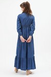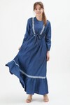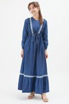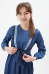 Mavi Dantel Detaylı Kuşaklı Kız Çocuk Jean Elbise 15214