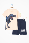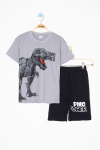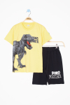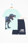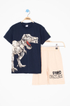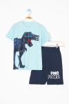Mavi Dino Baskılı Yazılı Erkek Çocuk Şortlu Alt Üst Takım