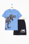 Mavi Dino Baskılı Yazılı Erkek Çocuk Şortlu Alt Üst Takım 20621
