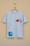 Mavi Kaykay Baskılı Yazılı Erkek Çocuk Bisiklet Yaka Tişört