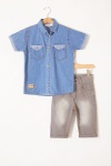 Mavi Kısa Kol Gömlekli Şortlu Erkek Çocuk Jean Takım