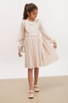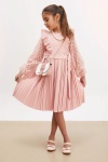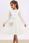 Kumaş İçeriği: %100 Pamuk İçeriklidir. Türkiye'de Üretilmiştir. Dantel İşemeli Tüllü, Piliseli, Fermuar Kapamalı ve İnci Kolye, Çanta Aksesuarlarına Sahip Kız Çocuk Elbise Modeli. Maksimum 30 Derece Sıcaklıkta Yıkayınız. Ağartıcı Kullanmayınız. Orta Sıcaklıkta Ütüleyiniz. Tamburlu Kurutma Yapmayınız. Kuru Temizleme Önerilmez.