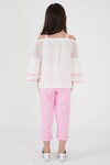 • Şık Dantel Detayı, Volanlı Kol ve Kuşağı ile Kız Çocuk Alt Üst Takım. Sadeliği ve aynı zamanda şık detayları ile özel günlerinizde çocuklarınıza çok yakışacak Dantelli Volanlı Takım.