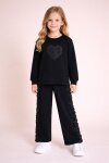 Pembe Gül Detaylı Geniş Paça Pantolonlu Kız Çocuk Badili 2li Takım 23730