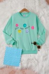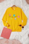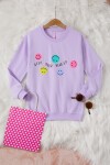 Pembe Gülen Yüz Baskılı Kız Çocuk Bisiklet Yaka Sweatshirt