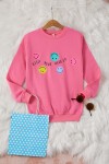 Pembe Gülen Yüz Baskılı Kız Çocuk Bisiklet Yaka Sweatshirt 17282