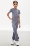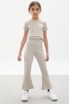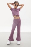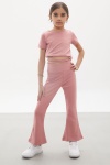 Pembe İspanyol Paça Taytlı Bel Bağlamalı Croplu Kız Takım 18110