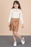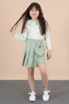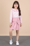 Sevimli Kalp Desenli Müslin Gömlek ve Keten Beli Lastikli Etekten Oluşan Kız Çocuk 2li Takım Modeli.