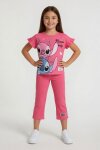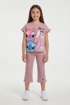 Pembe Karakter Baskılı Fitilli Bermuda Pantolonlu Kız Çocuk Tişörtlü Takım 23805