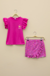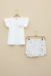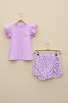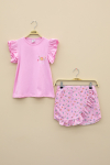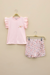 Pembe Kolları Fırfırlı Çiçek Desenli Şort Etekli 2'li Takım 20716