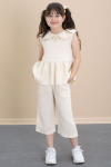 Kumaş İçeriği: %100 Pamuk İçerikli Kumaştır. Bebe Yakalı Brodeli Sıfır Kol Bluz ve Kapri Pantolondan Oluşan Kız Çocuk 2li Müslin Takım
