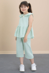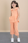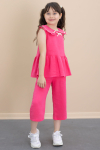 Pembe Sıfır Kol Bebe Yaka Bluzlu Pantolonlu Kız Çocuk 2li Takım 21028