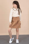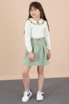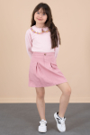 Yakası Çiçek Nakış İşlemeli Müslin Gömlek ve Keten Beli Lastikli Etekten Oluşan Kız Çocuk 2li Takım Modeli.