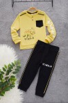 Sarı Dinozor Baskılı Cepli Erkek Bebek Eşofman Takımı 17322