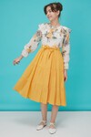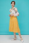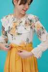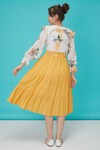 Sarı Gül Desenli Boncuk İşlemeli Kuşaklı Kız Elbise 15123