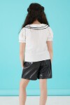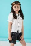 Siyah Dantel İşlemeli Deri Şortlu Bluzlu Kız Takım 15520
