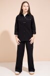 Siyah Kalp İşlemeli Gömlekli Geniş Paça Pantolonlu Kız Çocuk Gabardin Takım 23551
