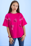 Kumaş İçeriği: 98 Pamuk %2 Elastan İçeriklidir. Türkiye'de Üretilmiştir. Kolları Şerit Detaylı, Payet Baskılı Kısa Kollu Oversize Kesim ile Şık Kız Çocuk Tişört Modeli.