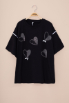 Siyah Kolu Şerit Detaylı Payetli Kız Çocuk Oversize Tişört 20813