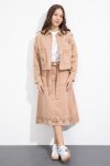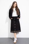 Siyah Nakış Detaylı Jean Ceketli Kuşaklı Etekli Kız Çocuk 3lü Takım 23501