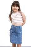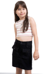 Siyah Ön Cepli Beli Lastikli Kız Çocuk Jean Şort Etek 21120
