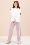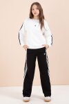 Siyah Şerit Detaylı Geniş Paça Nakışlı Kız Oversize Eşofman Takımı 23452