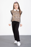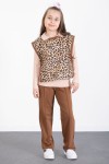 Taba Leopar Desenli Süveterli Badili Kız Çocuk Pantolonlu 3lü Takım 20528