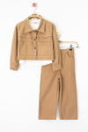 Taba Püsküllü Jean Ceketli ve Pantolonlu Kız Çocuk Badili 3lü Takım 20696