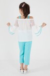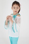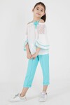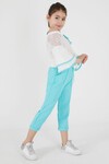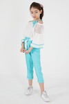 Turkuaz Fiyonklu Askılı Volanlı Kol Kız Çocuk Takım 15089