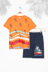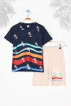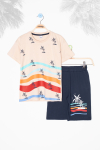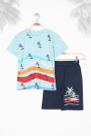 Pamuk İçerikli Kumaştan Üretilmiştir. Sevimli ve Şık Palmiye Baskılı Yazı Detaylı Bisiklet Yaka Kısa Kol T-shirt ve Beli Lastikli Esnek Şorttan Oluşan Erkek Çocuk 2li Takım Modeli. Yaz Aylarında Sevimli Tarzı ile Çocuklarınızın Vazgeçilmez Parçası Olacak. 2 İplik Penye Kumaştır. Esnek Kumaşı ile Çocuklarınıza Rahat Bir Kullanım Sunar.