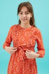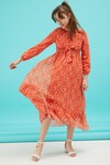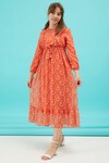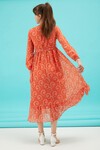 Turuncu Çiçek Desenli Fırfırlı Kız Çocuk Şifon Elbise 15212