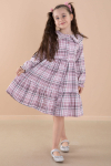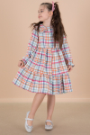 Kumaş İçeriği: %70 Pamuk %30 Polyester İçeriklidir. Türkiye'de Üretilmiştir. Önden Düğme Kapamalı, Şık Ekose Desenli, Bilekleri Lastikli Kız Çocuk Elbise Modeli.