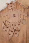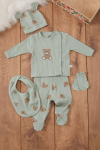 Yeşil Ayıcık Baskılı Önlüklü Erkek Bebek 5li Hastane Çıkışı 19464