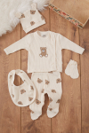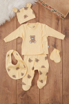 Yeşil Ayıcık Baskılı Önlüklü Erkek Bebek 5li Hastane Çıkışı