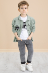 Yeşil Cep Kapaklı Gömlekli Jean Pantolonlu Erkek Çocuk 3'lü Takım 20023