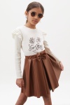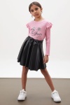 Kumaş İçeriği: %95 Pamuk %5 Likra İçeriklidir. Çiçek Desenli Hologram Baskılı Uzun Kollu Sweatshirt ve Fiyonklu Deri Etekten Oluşan Kız Çocuk Takımı. Maksimum 30 Derece Sıcaklıkta Yıkayınız. Ağartıcı Kullanmayınız. Orta Sıcaklıkta Ütüleyiniz. Tamburlu Kurutma Yapmayınız. Kuru Temizleme Önerilmez.