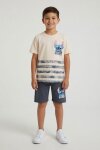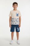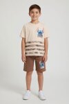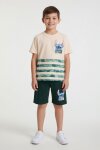 Yeşil Palmiye Desenli Çizgili Tişörtlü Erkek Çocuk Şortlu 2li Takım 23930