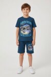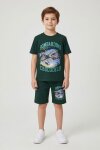Yeşil Uçak Baskılı Yazılı Tişörtlü Erkek Çocuk Şortlu 2li Takım 23921