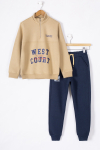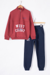 Yeşil West Yazılı Fermuar Yaka Erkek Çocuk Şardonlu Eşofman Takım 19596