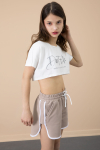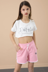 Şık Çiçek Baskılarına  ve Yazı Baskılarına Sahip, Bel Kısmı Lastikli Çift Cepli Kız Çocuk Şort Modeli. Sade ve Şık Tarzı ile Çocuklarınızın Kombinlerini Süsleyecek Şort. Rahat Kumaşı ile Konforlu Bir Kullanım Sunar.