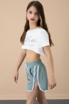 Yeşil Yanları Yırtmaçlı Çiçek Baskılı Beli Lastikli Kız Çocuk Şort 20741