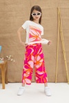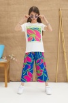 Kumaş İçeriği: %94 Pamuk %6 Elastan İçeriklidir. Türkiye'de Üretilmiştir. Yaprak Baskılı Yazılı, Bisiklet Yaka Kısa Kol Tişört ve Geniş Kesim Yazlık Pantolonda Oluşan Kız Çocuk Takım Modeli. Maximum 30 Derece Sıcaklıkta Yıkayınız. Ağartıcı Kullanmayınız. Orta Sıcaklıkta Ütüleyiniz. Kuru Temizleme Önerilmez. Tamburlu Kurutma Uygulanmaz.