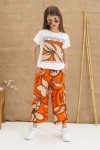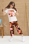 Yeşil Yaprak Baskılı Tişörtlü Pantolonlu Kız Çocuk Alt Üst Takım 18644