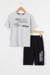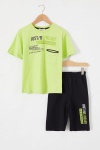 Yeşil Yazı Baskılı Göğüs Cepli Erkek Çocuk Şortlu Takım 18615