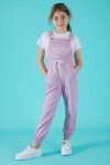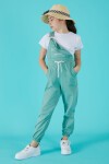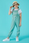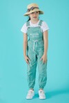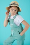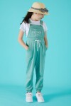 Yeşil Yazı Baskılı Tişörtlü Kız Salopet Tulum